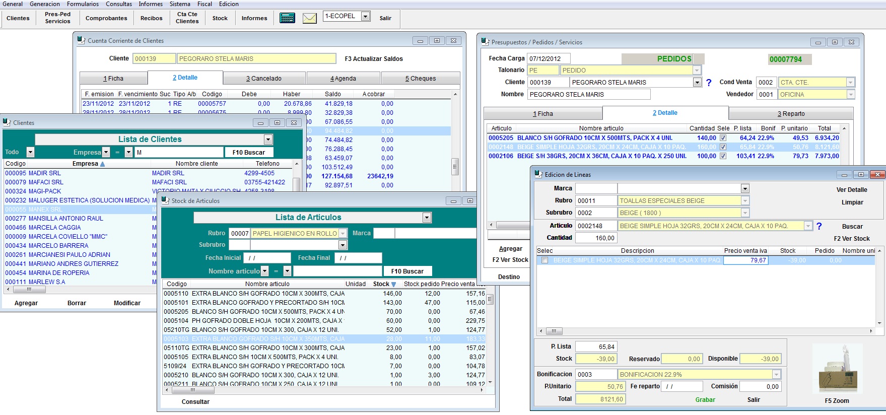 Completa gestión administrativa con los completos manejos de facturación (controlador fiscal o factura electrónica), cuentas corrientes, stock, pago a proveedores, carteras de terceros y propias, retenciones, concicliacion bancaria y mucho más ...