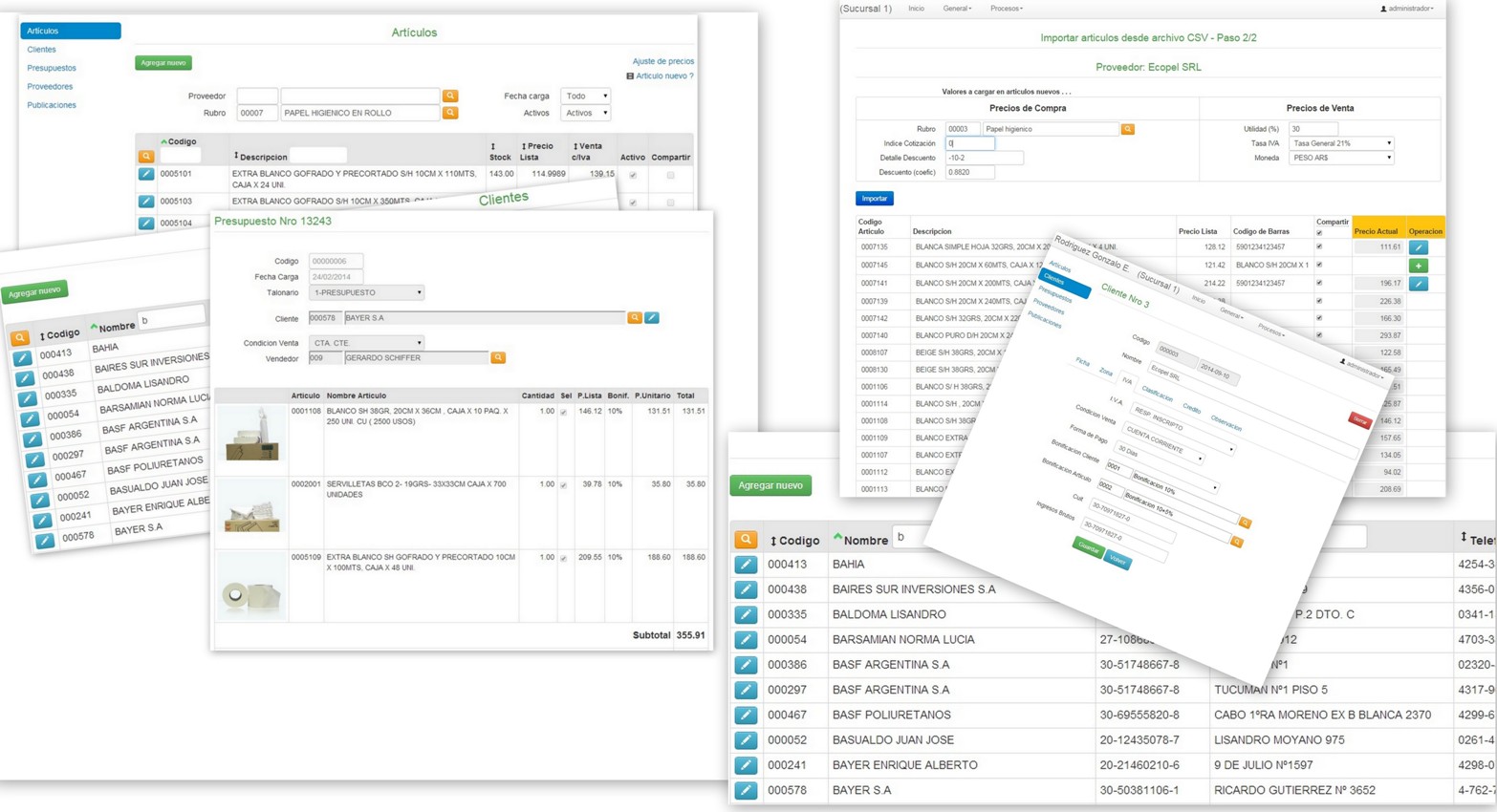 Todas sus sucursales en un solo lugar. Comparta sus listas de precios con otros empresas. Listas de sus Clientes y Proveedores. Carga de Presupuestos a clientes con artículos con foto. Pruebelo ahora sin ningún costo.